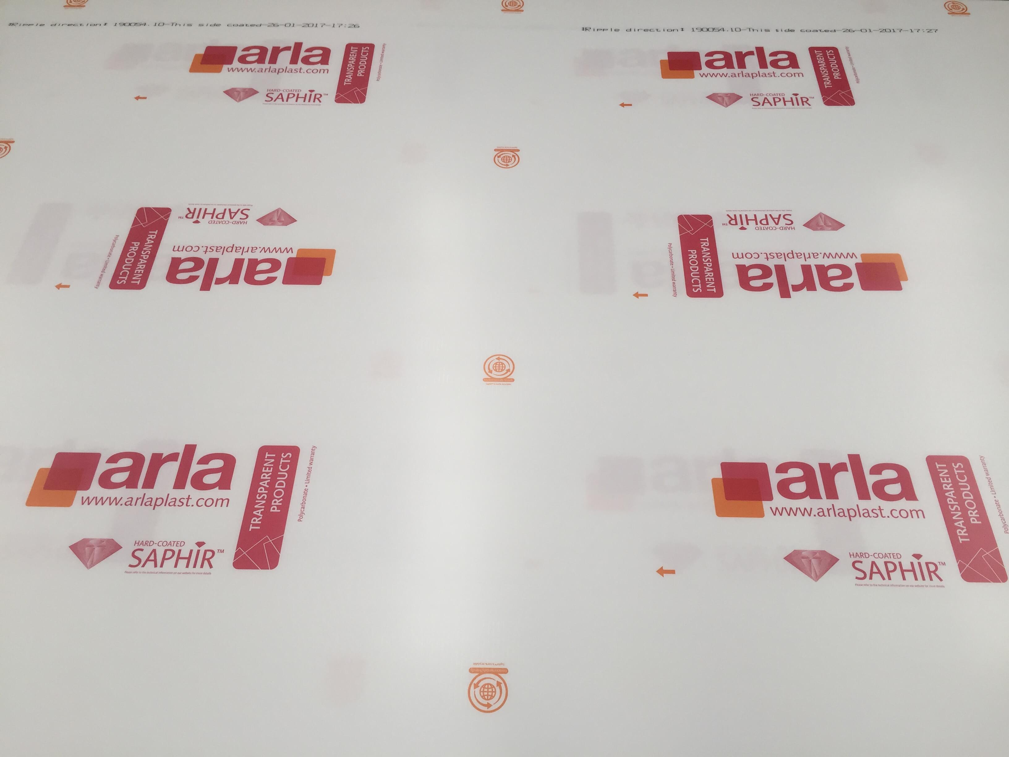 Transparent polycarbonate sheet with a scratch resistant hard coat treatment and optical quality for applications where good visibility is important. Available on 3mm thickness.